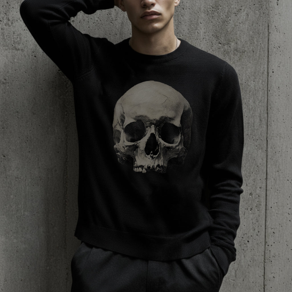Sudadera minimalista acabado en color negro mate sólido. Construido sobre una base textil de alto gramaje que maximiza la durabilidad y la retención estructural. Destaca su interfaz gráfica de alta resolución, ejecutada con pigmentos técnicos que mantienen la textura del tejido, ofreciendo un aspecto visual impactante sin comprometer la sobriedad ni la resistencia de la prenda.