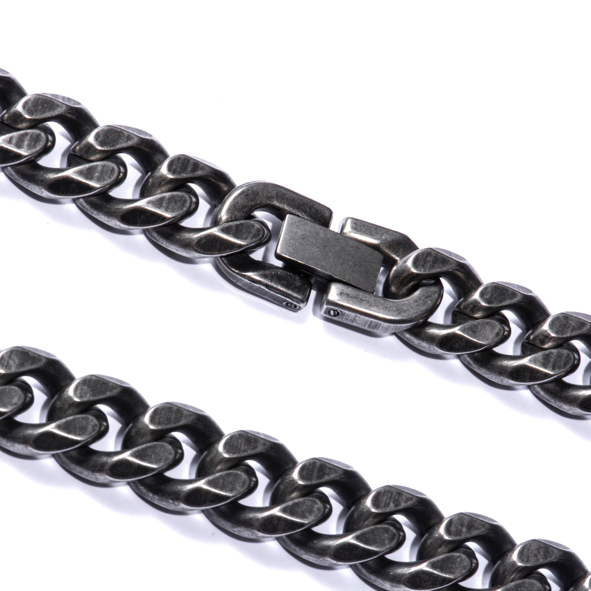 Pulsera tipo curb en acero de alta densidad con acabado dark polished, logrando un brillo profundo y uniforme.